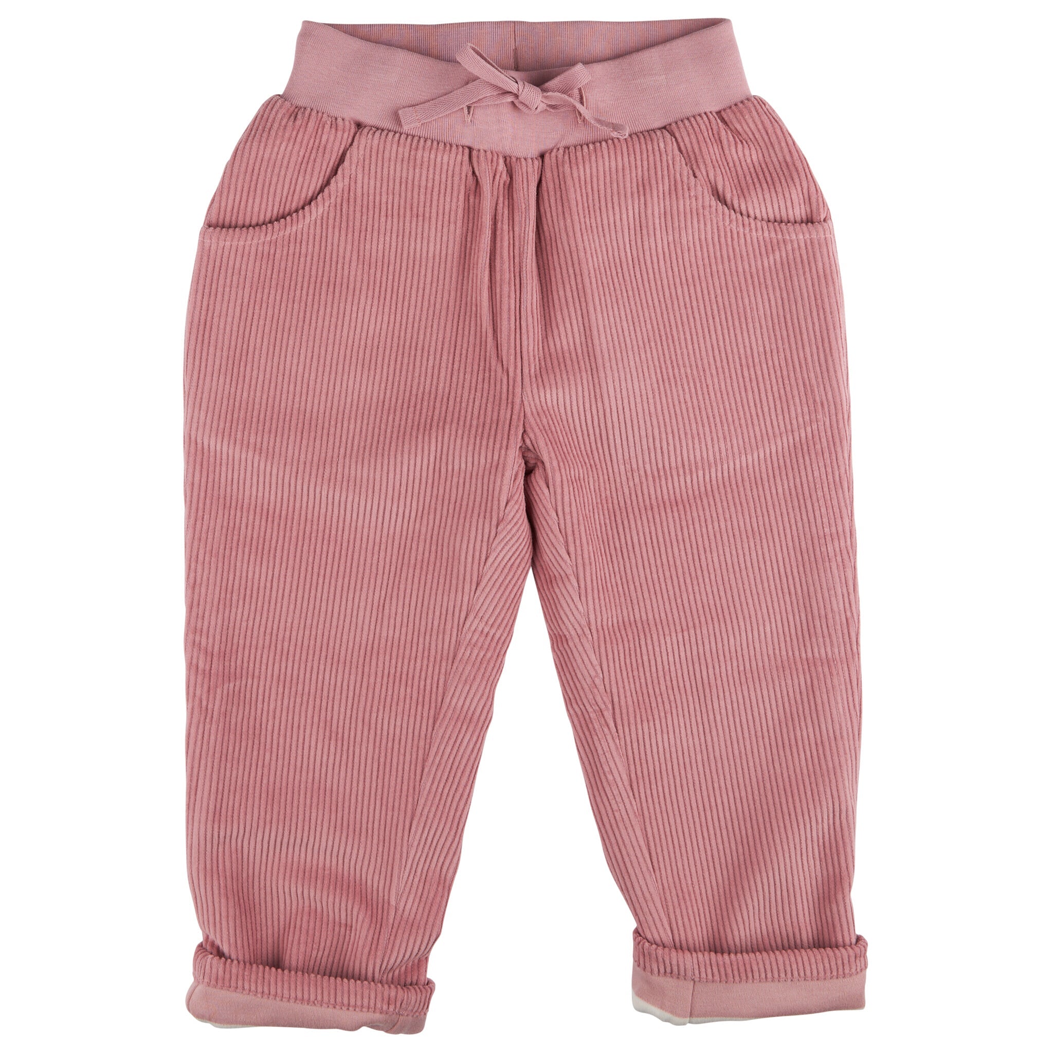 Baby cord trousers, fully lined in soft jersey. Comfortable rib waistband and tie detail at front.