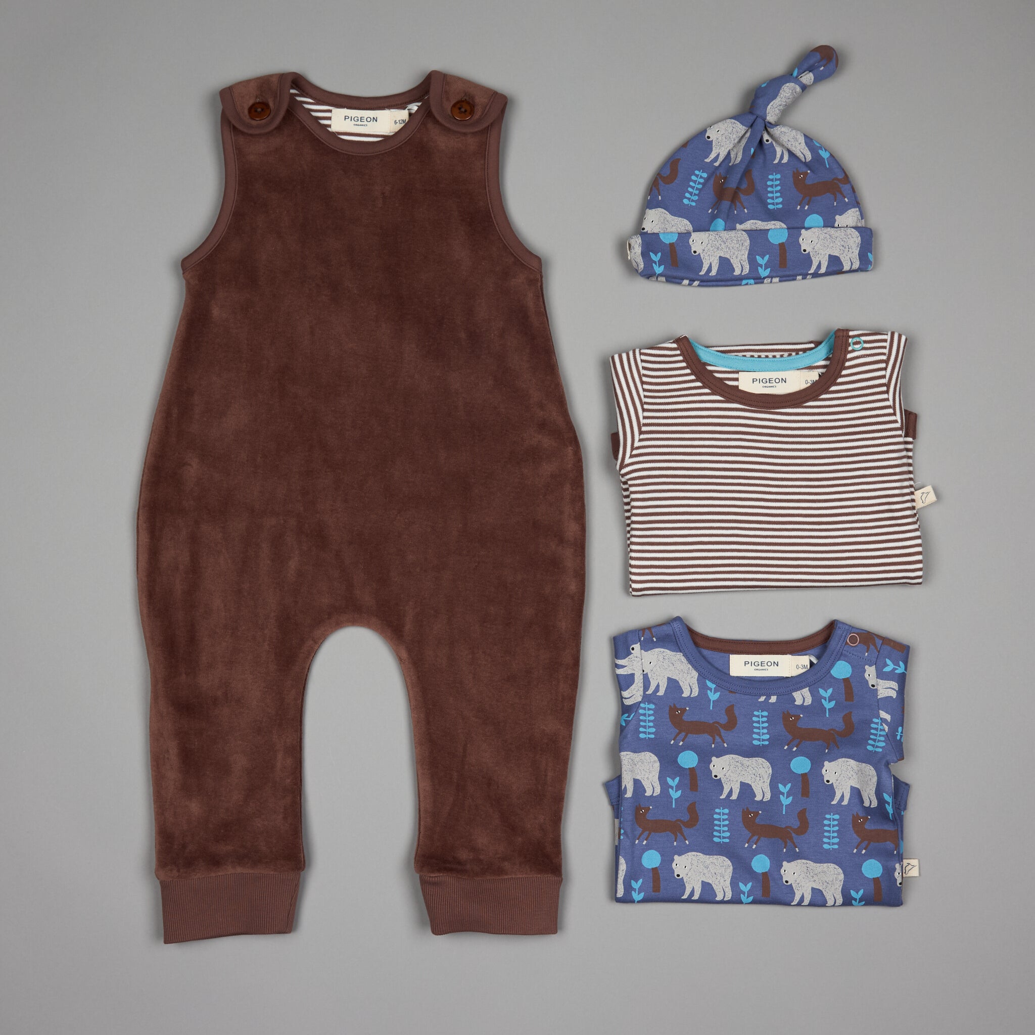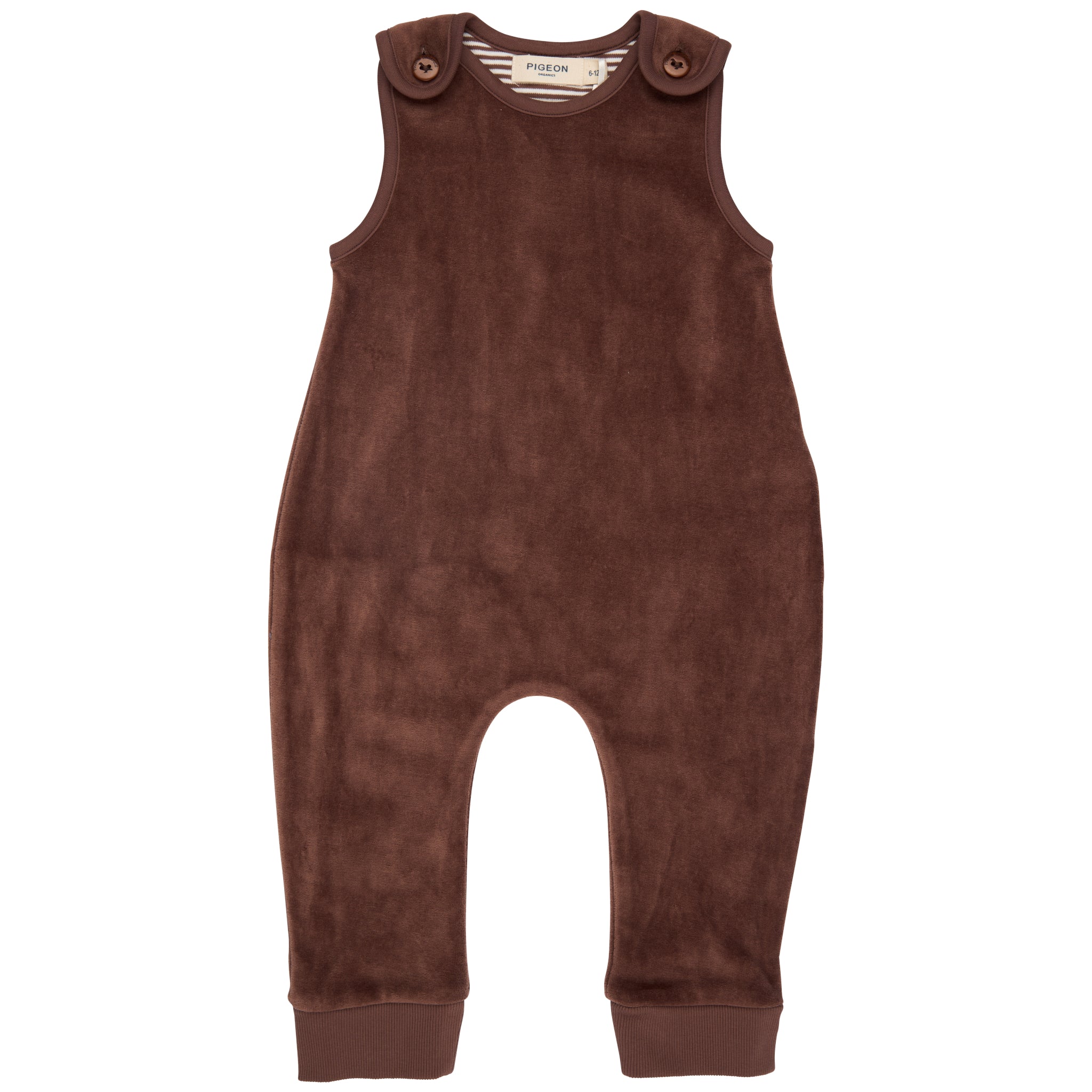 Cosy playsuit in luxurious velour, fully lined in soft striped jersey.