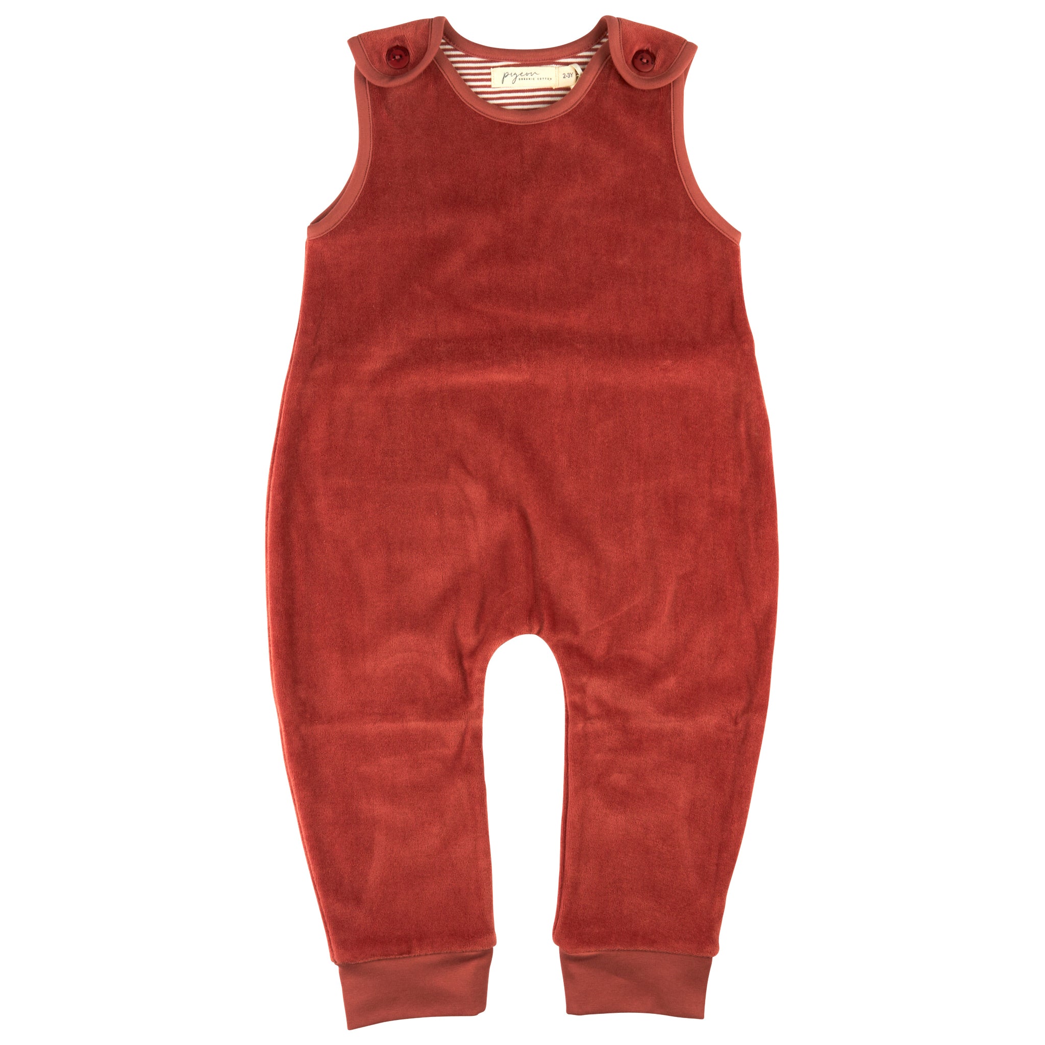 Cosy playsuit in luxurious velour, fully lined in soft striped jersey.