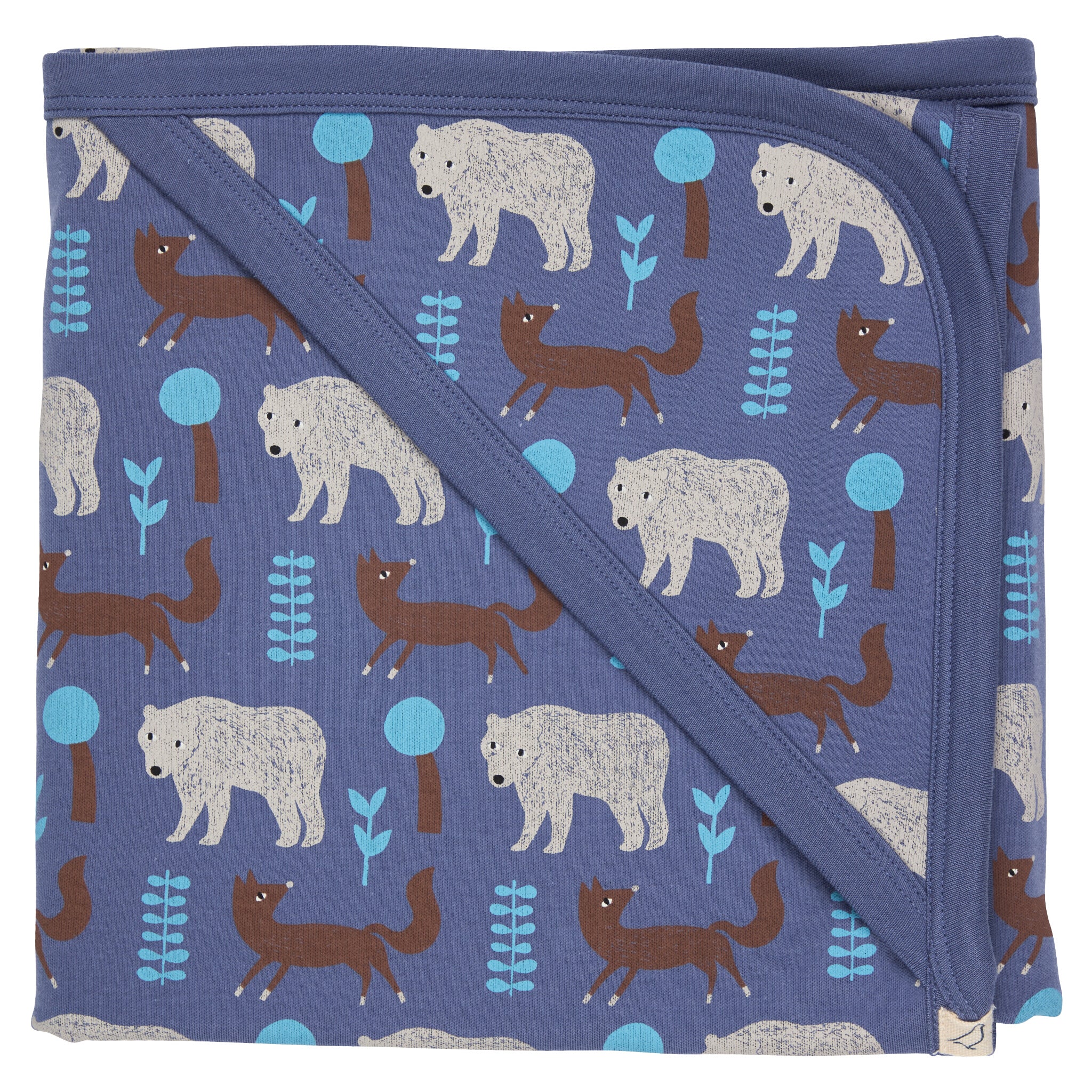 Hooded Blanket - Bear & Fox, Blue