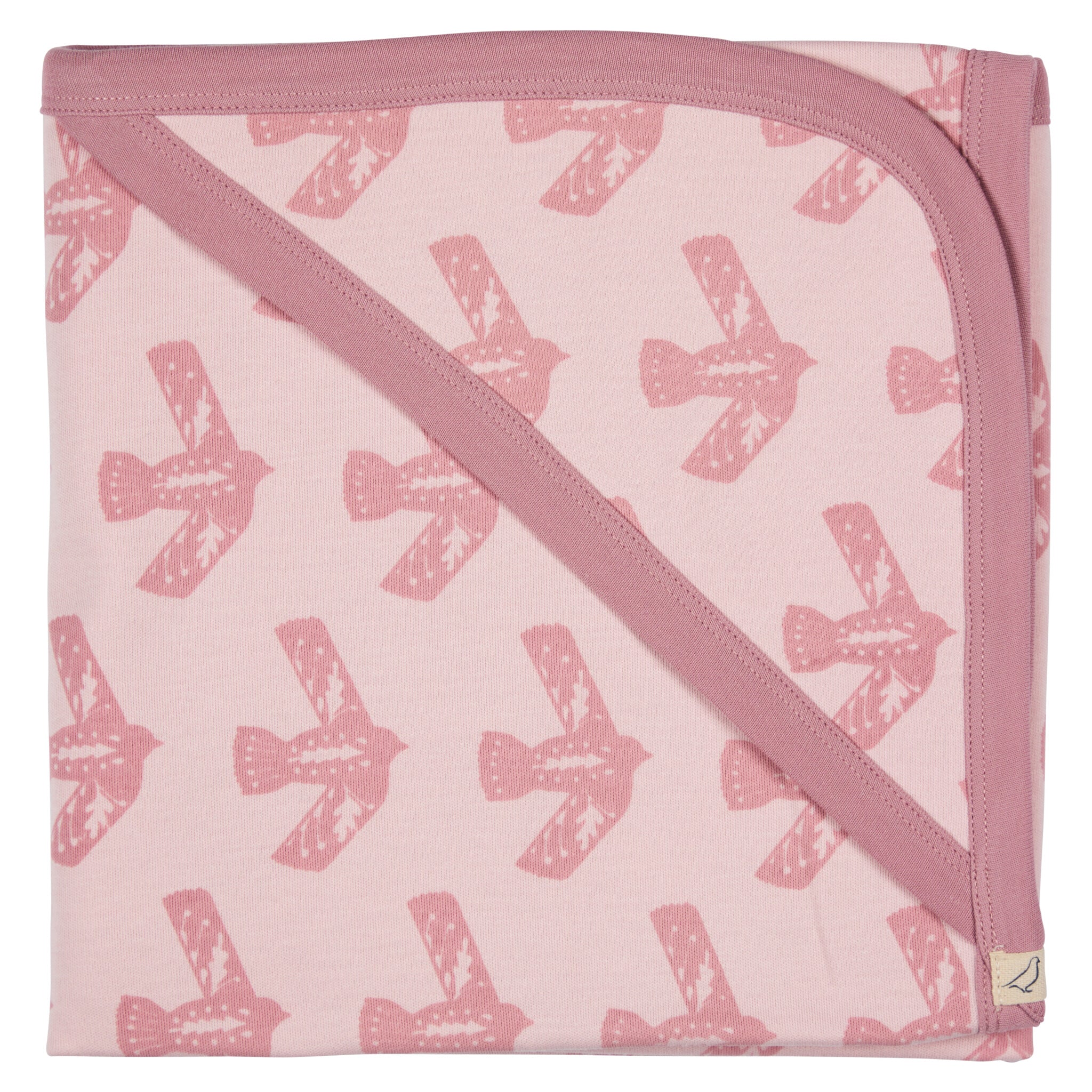 Soft hooded blanket in double thickness jersey. Print on one side, fine stripe on reverse.